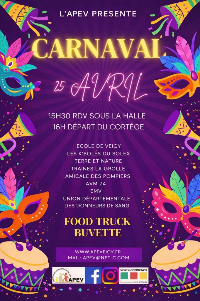 L’association des parents d’élèves de Veigy organise une fois de plus son célèbre carnaval le samedi 25 avril à partir de 15h30.