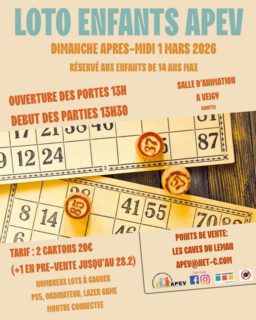 Nous avons le plaisir de vous inviter au Loto des Enfants !